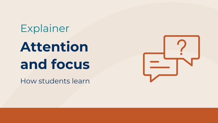 Explainer Apr 2025 Attention and focus Attention and focus are essential for students to process and retain new information effectively. Attention refers to the selective focus of conscious thought on specific information, allowing students to engage meaningfully with learning tasks. Engagement encompasses how students behave, feel and think as they actively participate in learning activities.
