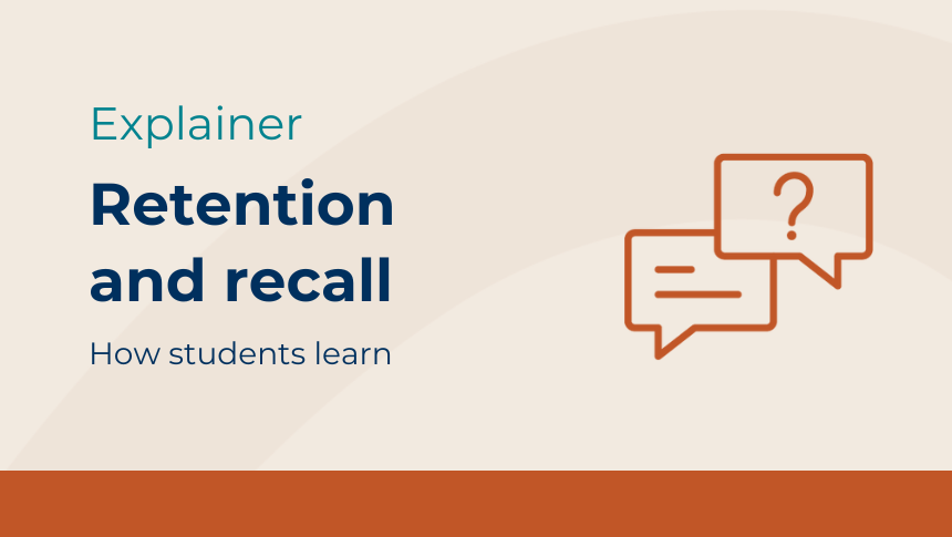 Explainer Apr 2025 Retention and recall Retention and recall are fundamental to successful learning outcomes. Knowledge needs to be retained so that it can be used. Retention is the ability to store information in memory over time, while recall is the ability to retrieve and use stored information when needed. When students effectively retain and recall information, they can easily access and apply it to build on existing knowledge and develop deeper understanding.